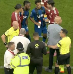 The game was briefly halted just before the 30-minute mark when referee Anthony Taylor stopped play as Liverpool prepared to take a corner. Taylor walked over to the technical areas to speak with both managers, Arne Slot and Andoni Iraola, prompting some initial confusion among players and fans.