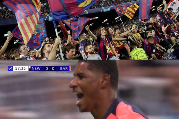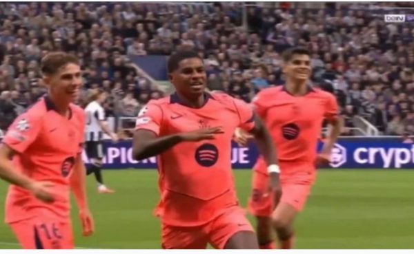 Watch: Rashford scores his first goal for Barcelona in world-class fashion, as if he took a penalty with his head, against Newcastle in the Champions League.