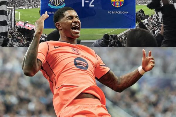 π¨ Breaking News from St. Jamesβ Park π¨ Marcus Rashford has just scored his first-ever goal for FC Barcelona, and what a way to do it! πβ€οΈ In a world-class moment that left the crowd stunned, Rashford rose highest and delivered a header so precise and powerful it felt like taking a penalty with his…